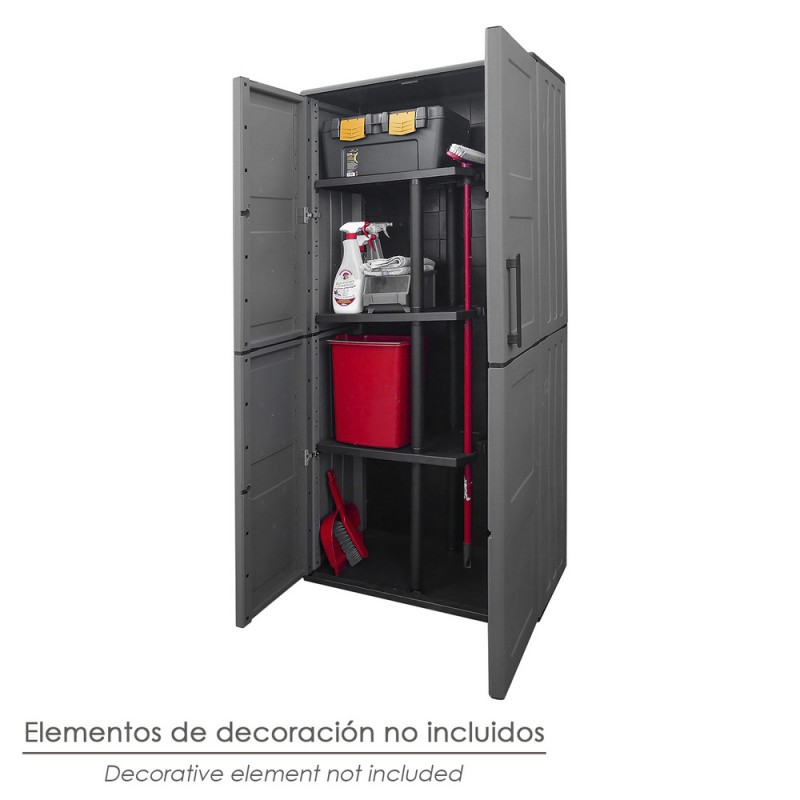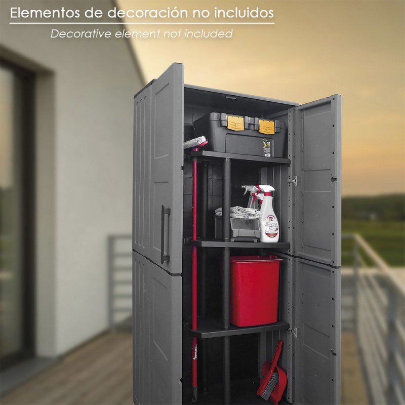 Armario Resina Alto 68x37x163 cm. Con Portaescobas. Color Gris Oscuro