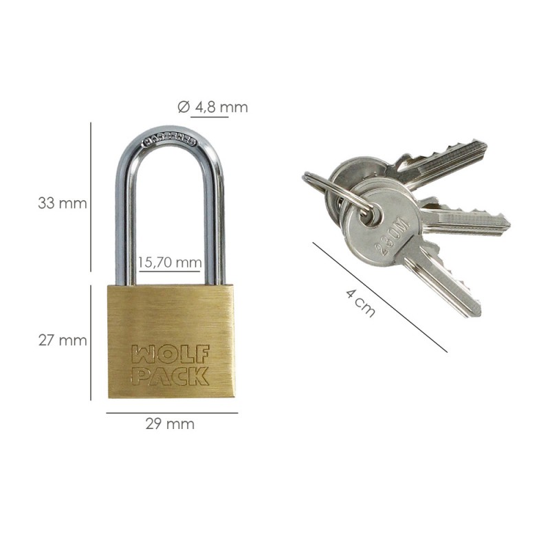 Candado laton arco largo llaves iguales nº2.
