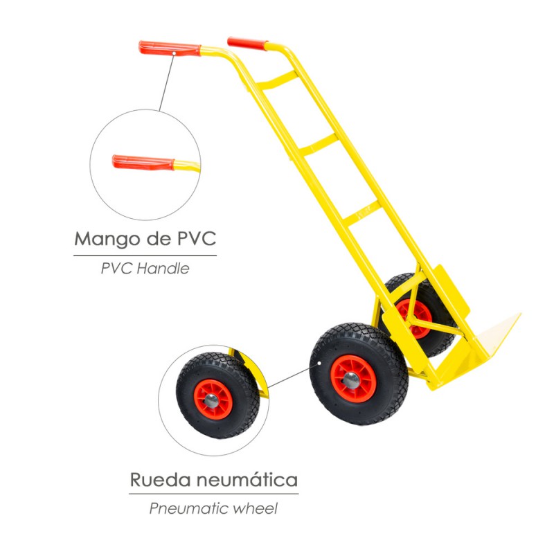 - Ya sea en trabajos de construcción, para mover sacos o cualquier otro tipo de transporte pesado, esta carretilla es la aliada perfecta para simplificar tus labores diarias.